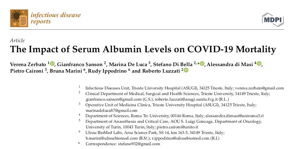 - Zerbato et al. The Impact of Serum Albumin Levels on COVID-19 Mortality. Infect. Dis. Rep. 2022, 14(3), 278-286. https://doi.org/10.3390/idr14030034
