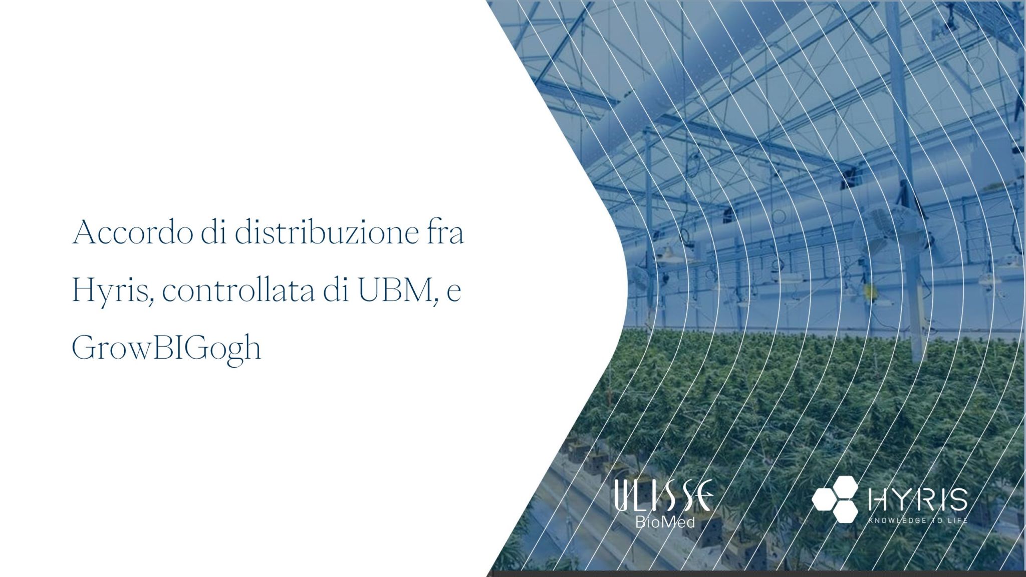 Hyris, a wholly owned subsidiary of Ulisse Biomed S.p.A., has signed a distribution agreement with GrowBIGogh, a company based in Gilroy and Salinas, California, which sells technology solutions for the hydroponic gardening and agriculture sector.