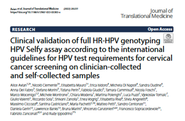 18 May 2022 HPV SELFY: PRIMO HPV TEST DI GENOTIPIZZAZIONE COMPLETA VALIDATO PER LO SCREENING DEL CARCINOMA DEL COLLO DELL’UTERO SU CAMPIONI AUTO-PRELEVATI